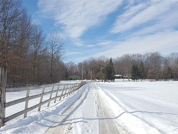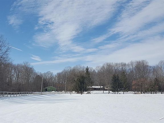 Amazing opportunity to have your own farm on 18 acres with 2 barns (approx 54x42 & 48x24) plus a chicken coop! An abundance of wildlife surrounds the home with beautiful views in every direction including views of the pasture, hay fields, meadow & pond. The green barn houses a warming room, feed room, tack room & has 4 complete stalls in place with room for up to 9. Electric & water available in both barns, 200 amp service w/welding outlet in green barn. House roof is 1 year old, hot water heater is 2 years old. Updates in past 20 years: composite & vinyl deck, fenced in backyard, central air, exterior doors, some windows & flooring.