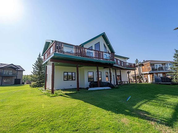 WIZARD LAKE WATER FRONT!! Amazing WEST FACING VIEWS looking right down the Lake! This is a Fantastic 2 Storey with a WALK OUT BASEMENT and a DOUBLE ATTACHED GARAGE! Upstairs your met with Hardwood Floors a over sized Stone Gas Fire Place, a WIDE OPEN floor plan consisting of your living room, Spacious Kitchen with a dining area, down the hall is a half bath, Laundry Room and your very Large Master Bedroom with a great sized Walk in Closet and 4 pc Ensuite with a 2 person soaker tub with views and shares a double sided fire place with the sleeping area. Completing your upstairs is your very very large DECK over looking the Lake. Downstairs you have another living room, 3pc bathroom, 2 more bedrooms and access to your garage. All this 35 mins away from Edmonton. Lake Life at its Finest.