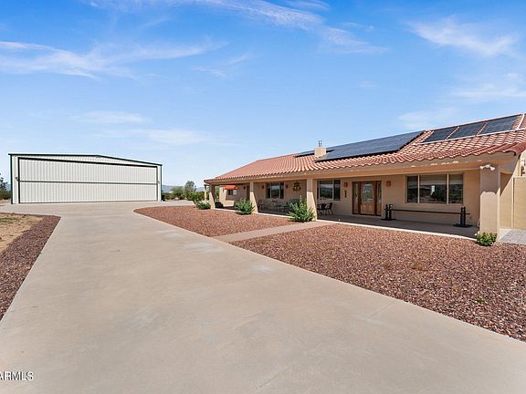 Superb custom-built home and oversized hangar in gated, private airpark. House is of rastra construction for energy efficiency during all seasons. Solar panels are owned. The exercise pool has solar thermal heating. Home is energy efficiant, avg. $70 reduction in electric a month. This beautiful 2,439 sq. ft., 3 bedroom, 2 bath home has an open floor plan, fireplace, spacious kitchen, and features a lovely backyard, perfect for entertaining!