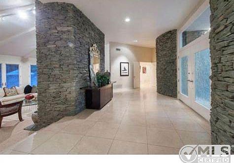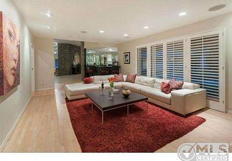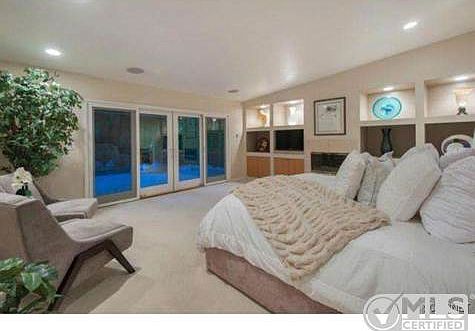 Located at the end of a cul-de-sac, this 5 bed+4.5 bath home blends polished refinement w/designer details. A zen infused weeping water feature welcomes guests into the dramatic foyer which is flanked by stacked stone elements. At approximately 45' long, the lg liv rm features walls of French drs, soaring clngs & a striking flr to ceiling stacked Bouquet Cyn frplc. Enhanced by an oversized wetbar, blt-in cabinets & an abundance of natural light, the inviting fam rm adjoins the lovely eat-in center isl kit which features stainless apls, cstm cabs, maple flrs & granite cntrs. Emphasizing a rare combination of relaxed sophistication, the spacious mstr ste offers French sliders overlooking the tranquil pool, a frplc, art niches & spa quality bath w/Walker Zanger tiles, rift oak cabs, Philippe Starck designed Duravit vessel basins & fixtures, Caesarstone cntrs, bubble jet tub & a prof organized room sized walk-in closet. The strong aesthetic is continued in the lush landscaped exterior. The epitome of a relaxed California lifestyle, the sprawling grounds have mature landscaping, a pergola cvrd patio, bbq & a beautiful infinity pool w/spa & water feature. Other amenities include an office w/priv entry, frml dining, numerous blt-ins, skylights & chic powder rm. Brokered And Advertised By: Berkshire Hathaway HomeService Listing Agent: Harriet Cameron