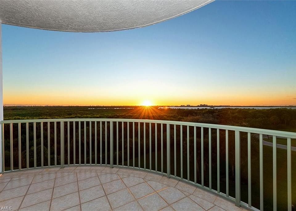 Experience resort-style living in Bonita Bay from this elegant 4th-floor corner residence, offering panoramic Western views and spectacular sunsets over Estero Bay. This expansive 3-bedroom+ versatile study, 3-bathroom home is designed with an open floor plan, enclosed lanai providing extra square footage and three private balconies that seamlessly blend indoor and outdoor living. The grand living area features wide-plank wood flooring, soaring ceilings, and walls of glass sliders that fill the space with natural light and frame serene vistas of lush greenery and sparkling water. A spacious kitchen serves as the heart of the home, appointed with granite countertops, center island, brand-new stainless-steel appliances, and abundant cabinetry, making it ideal for both casual dining and entertaining. Retreat to the luxurious primary suite, large windows showcase breathtaking views. The spa-inspired bathroom offers dual vanities, a soaking tub, and separate walk-in shower for ultimate relaxation. Additional en-suite bedrooms provide comfort and privacy for family or guests. One of the guest bedrooms is equipped with a built-in Murphy bed, allowing the space to effortlessly transition between a comfortable sleeping area and a versatile home office or flex room Additional highlights include a private under-building 2-car garage with extra storage, freshly painted interiors, and a neutral palette ready for customization. The lifestyle at Bonita Bay is truly unrivaled. Residents enjoy exclusive amenities including a resort-style pool, fitness center, tennis and pickleball courts, a full-service marina, and over 12 miles of scenic walking and biking trails. A private beach shuttle whisks you away to Bonita Bay’s own beach park, while dining at the popular Backwater Jack’s and access to world-class golf further elevate the experience. This is a rare opportunity to own a residence in one of Southwest Florida’s most sought-after communities—perfectly blending elegance, convenience, and a coveted coastal lifestyle.