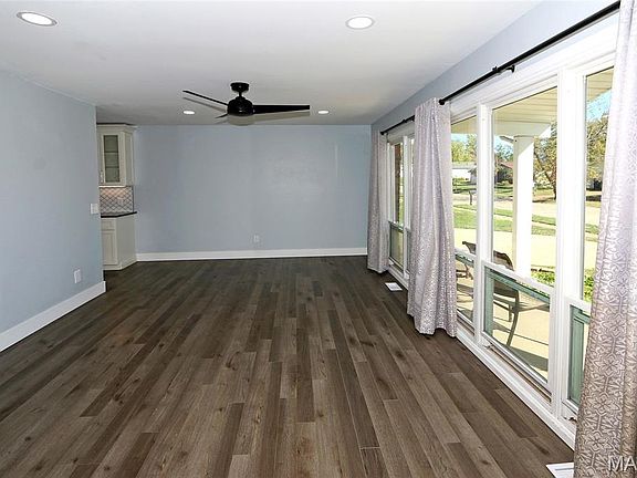 Welcome home to this spacious, ranch style, open floor plan featuring 4-sides brick, covered soffits & fascia, 4- bedrooms, 2-full baths & a 2-car garage. This beautiful, renovated kitchen (2021) is the heart of the home featuring an abundance of custom cabinets including some glass front cabinets, quartz countertops, luxury vinyl flooring, an (approx. 9ft x3.5 ft) center island/breakfast bar, can lights, dishwasher, built-in microwave & a "top of the line" 6 burner gas range with blue-tooth & wi-fi. Entertain all your guests in the family-room which was previously being used as a dining-room and includes built-in cabinets for extra storage. Just off the family-room you will find a beautiful sliding door (2025) that leads to the newer patio & level backyard. You will find hardwood floors in all the bedrooms & luxury vinyl flooring in the living-room & family-room. There is a main floor laundry as well. A full basement offers endless possibilities for future finishing. Conveniently located in the desirable Lindbergh School District, close to shopping, dining & more.