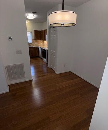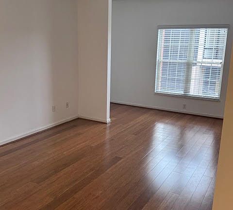 Gated private patioFresh interior paintGround level unitStorage closetsLarge walk-in closetsNew hardwood floorsArch-divided dining room