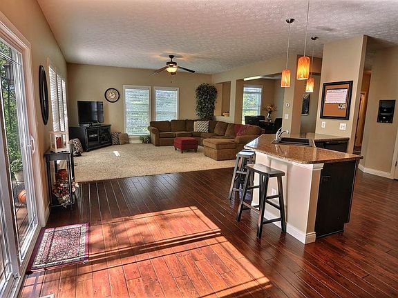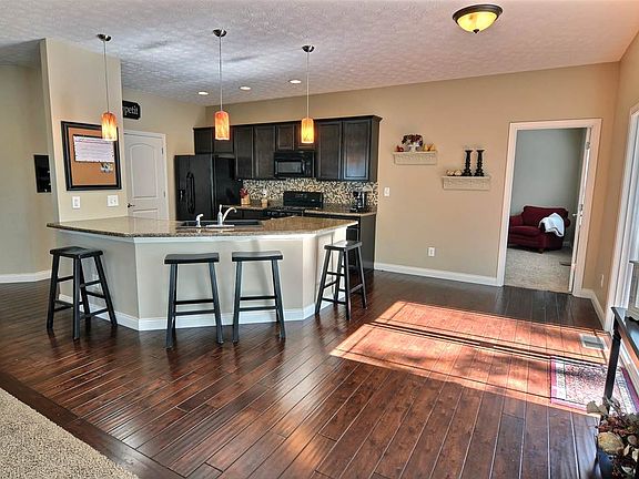 Beautiful stone exterior welcomes you in this lovely newer home built by Citation Homes. Hardwood floors add to the charm and character throughout the kitchen and dining room. Kitchen features granite counters, warm cabinetry, large pantry, modern tile backsplash and lighting with ample seating at the breakfast bar. Master bedroom has great natural lighting and tray ceiling with large master bath including dual vanity, stand up tile shower and separate walk in closet. One other bedroom on the main level, one full bedroom & bath on the upper level and two additional bedrooms in large finished basement gives everyone their own space and privacy! Additional rec room on the lower level perfect for hanging out and entertaining. Partially wooded, corner lot is almost a half acre and has its own ravine, large deck and manicured landscaping. Well cared for and perfect for your family! 3D Virtual Tour Available!