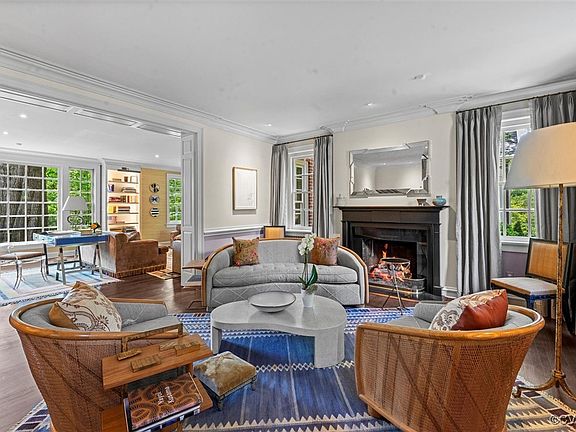 Additional highlights include professionally landscaped grounds by Russell Combs Design with newly built retaining walls, recently added covered porch with heaters and a built-in grill and a newly renovated gunite lap pool and pool surround (Bauhan Custom Build). Every room features exceptional millwork and craftsmanship. All plumbing and electrical have been refurbished and replaced with state-of-the-art Forbes and Lomax lighting. Full house generator recently added.