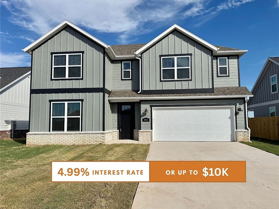 Fence, blinds and gutters included! Discover your dream home in the sought-after Osage Hills neighborhood. Delta plan with garage on the right and West facing! 9 ft ceilings, linear electric fireplace in the living room, LVP flooring throughout the main living areas and primary bedroom, quartz countertops and more. Chef's kitchen boasting frigidaire stainless steel appliances, gas range, pantry, quartz countertops, bar pull handles, large island and gorgeous backsplash. Luxurious primary bedroom features abundant natural light, while the spa-like primary bathroom offers a walk-in shower, tub, double sinks, and spacious walk-in closets. Additional features include a study on the main level, two large secondary bedrooms upstairs and a separate laundry room. Nestled on a generous lot with covered patio that overlooks the serene sodded, fully fenced backyard. Sturdy concrete siding & brick! Model home located at 6008 SW Coywolf St- Lot 122.