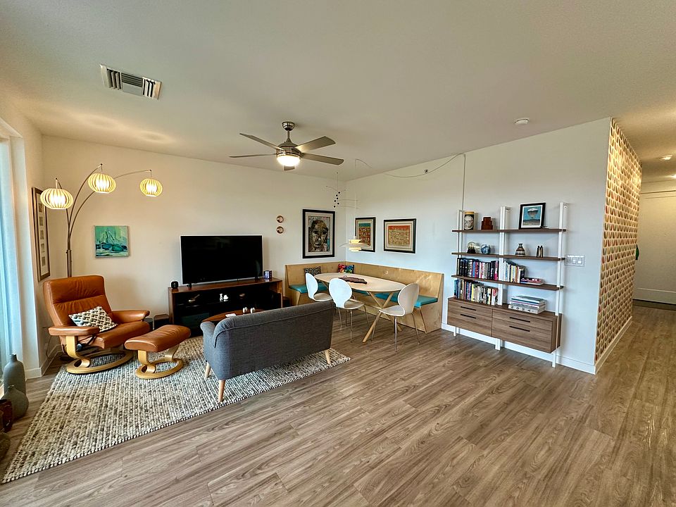 Furnished, pet friendly, 2nd-floor 2/2 condo near the Mueller neighborhood which offers amble shopping, restaurants, bars, events, parks, lakes, 5-mile hike-and-bike trail and a movie theater. The condo has 2 bedrooms, one is ensuite, as well as two full bathrooms. One with tub and one with walk-in shower. The kitchen is fully equipped with all appliances and anything needed to cook and dine. Linens and towels are provided as well as a starter kit of paper products, soap, shampoo, etc. There are a washer and dryer in the unit and two good sized walk-in closets. The most stunning feature is the 300 sf furnished balcony that overlooks the park and displays gorgeous sunsets on nice evenings. The community offers a beautiful pool, a sky lounge with views of downtown Austin, a pet spa, an outdoor fireplace and a park with an off-leash dog park. There is one reserved, covered parking space (carport style). Lease must be at least 6 months. No smoking indoors. Utilities and internet are included in the monthly rent. We can offer regular cleaning services for a fee.
