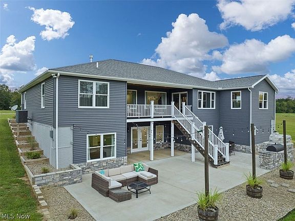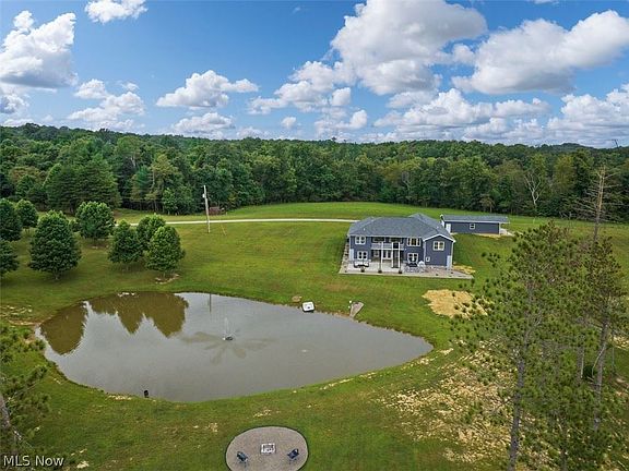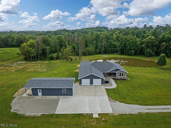 Check out this thoughtfully designed, open concept, ranch-style home built in 2016. Situated on approximately 20 acres of nice laying land, this property offers the privacy you've been looking for. The kitchen boasts custom cabinets, ample counter space, quality appliances, & walk-in pantry. The spacious living room with a gas fireplace & hickory floors is open to the kitchen & dining room. All first floor living with a huge master suite, an awesome master bathroom, & a 12x12 walk-in closet with lots of built-in shelves & drawers. The laundry room is just off of the oversized 2-car attached garage, and 2 additional bedrooms (with a unique jack & jill style bathroom) are also on the main level. The completely finished lower level offers rec room, media room with wet bar area, possible 4th bedroom, & large storage room. Outdoor features include: a covered patio, 20x34 open patio, outdoor kitchen area, 20x10 covered back deck, pond, and a 40x24 detached garage. With quality materials throughout, & attention to detail, this home is a must-see.