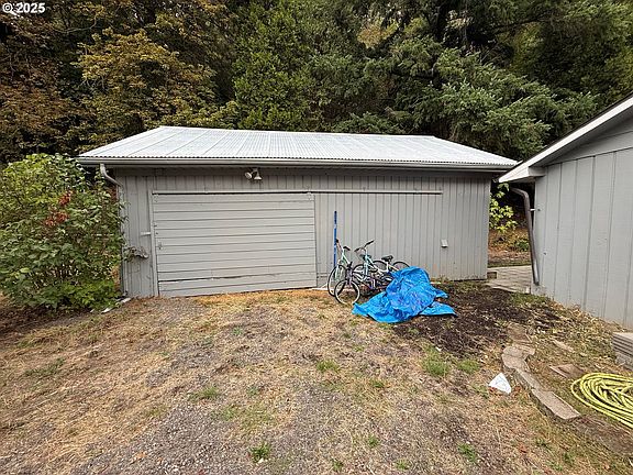 Freshly painted, cozy two bedroom home situated on over 1/4 Acre lot! Living room w/atrium windows. Ductless Heat and AC in main house. Mature fruit trees. Covered porch connects main house to 12 x 18 finished "bonus room". Next door to school and 5 minutes from some of the finest forest hiking. Oakridge is surrounded by lakes and has a river running through it. Known as the "mountain biking hub of Oregon".