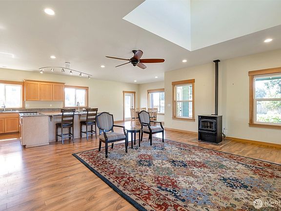 Beautiful One Owner, Modern Farm House! The wrap around covered deck, overlooks pastures and garden. Great room with cozy pellet freestanding stove, and ceiling fans. Kitchen with granite counters, wall oven, ceramic cooktop, and pantry. Owner suite with 2 closets, one being a walk in, and bathroom. Gorgeous LVP flooring throughout the main level. Upper level features bonus room. Plenty of room to roam on this 4.6 acre parcel, bring your farm animals! Chicken coop, open face cow barn, with ample storage for your farm equipment, and workshop. Lovely detached Studio with water and electricity (Rental Income, or Air BNB?). This fully fenced property could be ideal for homesteading. No HOA!