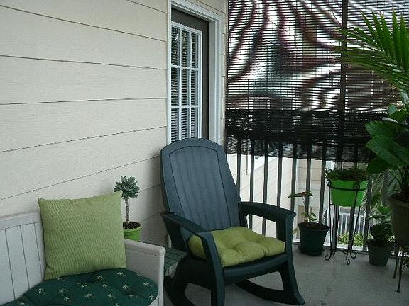 The unit features a screened patio, ceramic tile and laminate flooring in living room/dining room and bedrooms, kitchen appliances including frost-free refrigerator with ice maker, dishwasher and built-in microwave oven, garbage disposal, full-size washer/dryer hookups large walk-in closets and garden style tub/shower combo.