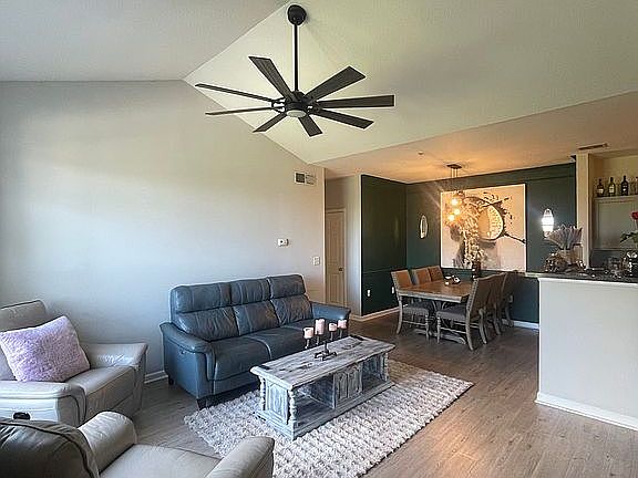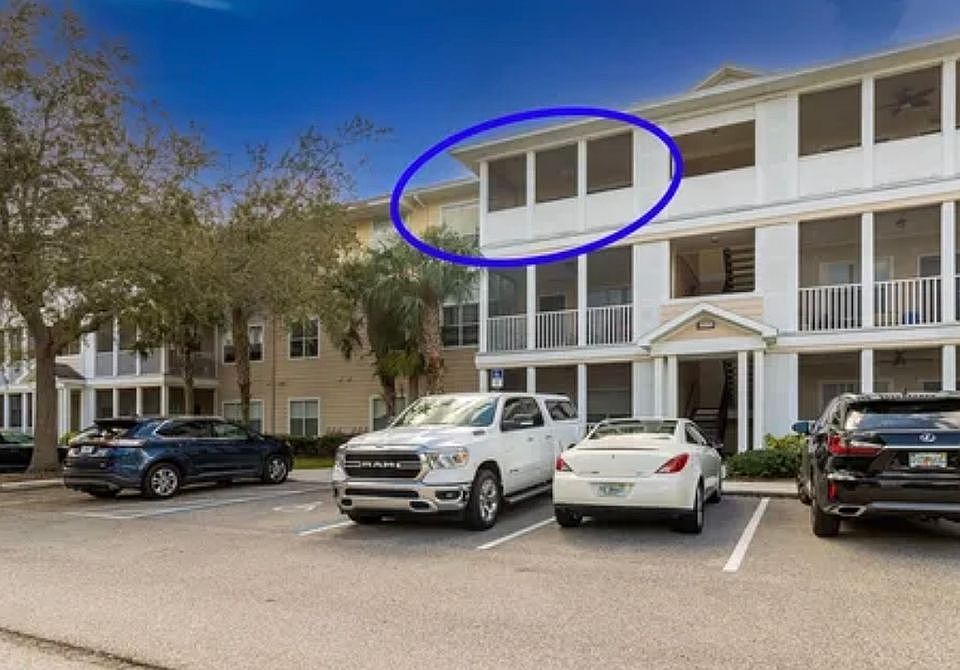 Come experience Resort-Style living at The Palms of Cortez! With this unit's vaulted ceilings and large windows it is light and bright and oh so pretty. Enjoy PRIVACY on the 3rd Floor overlooking the treetops and entertain a crowd with the open floor plan and large screened balcony. Each of the two spacious bedrooms feature WALK-IN CLOSETS and there is an attractive Tray Ceiling in the en-suite main bedroom. Inside Laundry with a Full-Sized Washer (2023) and Dryer (2020) as well as a private storage room off the balcony. The kitchen boasts newer cabinets, 2022 refrigerator, 2021 range, 2023 garbage disposal. The A/C condenser was just replaced in 2022 as well. The Palms of Cortez is a gated Community with hoa fee of $422, Large Pool, Tennis Courts, BBQ grill, Car Wash, Playground, Gym and Club House which is available for rent. Sitting in a Prime West Bradenton Location this lovely community is convenient to restaurants, IMG Academy, shopping, Gulf Beaches & Anna Maria Island.