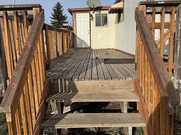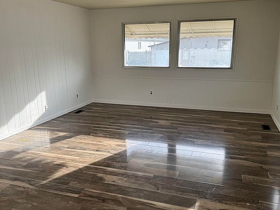Charming 3-Bedroom Mobile Home with Recent Updates. Step into your open concept kitchen and living room, it has been recently been given a fresh coat of paint, replaced electrical outlet plates and new baseboards throughout the home. A must see! Updates throughout most of the interior had been done over the past six years including- new flooring, new hot water heater (June 2025), washer/dryer (2 years old) and the bathroom has been renovated to a 4-piece bath, that offers a spa-like shower column with jets. Outside you will enjoy sipping coffee or entertaining guests on a sizeable deck that has gates on either end, great for pets or small children. A large back yard extends behind the mobile home with ample room for a storage shed. Priced to sell.