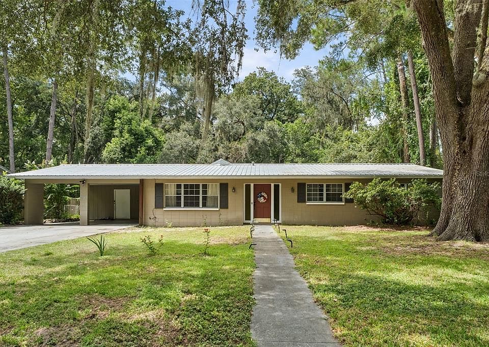 Walk to YMCA and a short drive to the University of Florida, UF Health and the VA from this centrally-located Northwood concrete block-home with NO HOA, 2019 metal roof, 2014 AC, 2019 water heater, 2025 fridge, 2025 kitchen stainless-steel kitchen sink. Features 3 bedrooms, 2 baths, formal living and dining and a massive family room that could be your game room and office or work out room, Possibilities are endless when you have the square footage! 1700 sq ft heated & cooled and 2200 sq ft under roof, spacious carport and generous driveway for all your other toys! Set on almost a quarter acre of land and priced under 300K! Both bathrooms have been updated, vinyl floors throughout are other features. Call now to view this home!