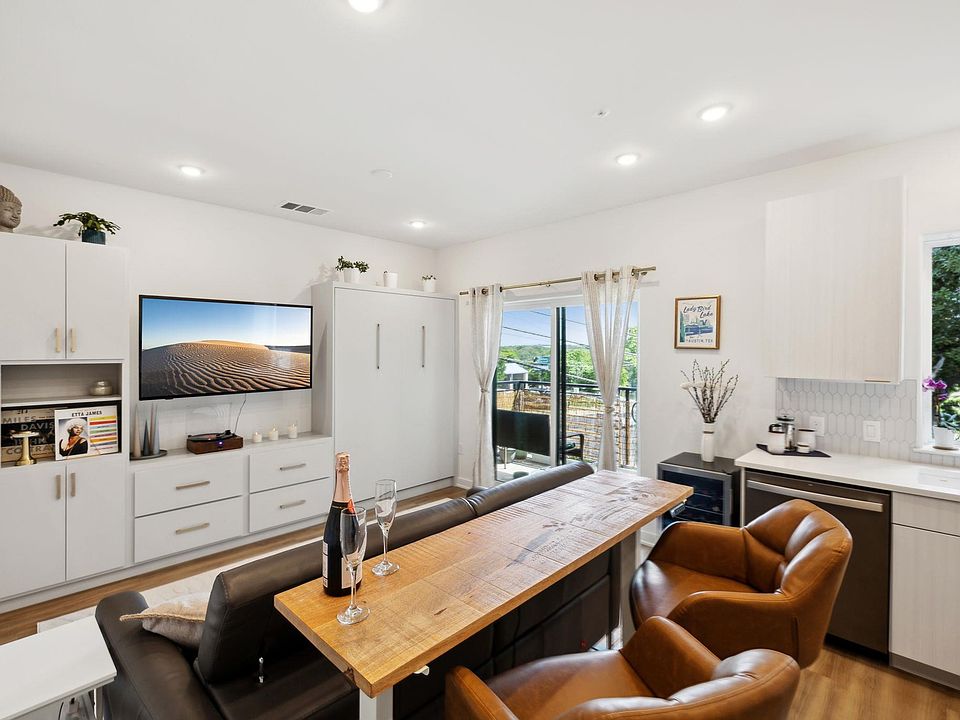 Sophisticated Living with $25K+ in Custom Upgrades – Unit #215 at The Bend Welcome to Unit #215 at The Bend Condominiums, where luxury upgrades and smart design meet in one of Austin’s most desirable locations. This 625 sq ft, one-bedroom, one-bath condo has been enhanced with over $25,000 in thoughtful improvements that elevate both form and function. The open layout is filled with natural light and features a custom-built Murphy bed—perfect for hosting guests without compromising living space. The kitchen includes a premium pantry system for added organization. A rare bonus: the unit comes with a detached, private storage room on the same floor. Your assigned garage parking space includes an EV charging outlet—an essential amenity with no additional parking spots available for sale. The Bend offers a resort-style community designed around comfort, wellness, and nature. Residents enjoy: A tranquil, creekside setting with native landscaping Expansive pool with privacy and lounge areas Fully equipped private fitness center Gated entry and secure underground parking Shaded walking trails and community courtyards Covered outdoor kitchen, grill stations, and fire pit Community garden for fresh herbs and vegetables Detached storage units (no more available for purchase) Centrally located near South Congress, Downtown Austin, St. Edward’s University, and top employers, The Bend blends urban access with serene surroundings. Unit #215 Highlights: $25K+ in upgrades including Murphy bed and custom pantry Garage parking with EV charger Same-floor private storage room Bright, open living area Full access to premium community amenities Enjoy elevated, nature-connected living at The Bend. Schedule your private tour today.