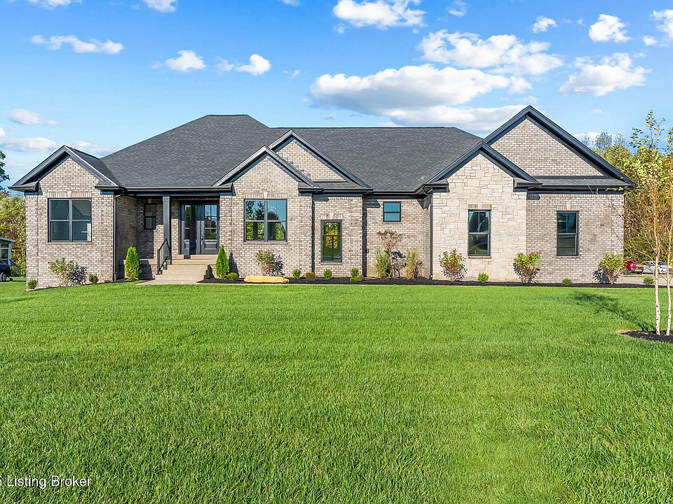 Prepare to be amazed by this brand new, light filled, sprawling Ranch on 1+ acres in top ranked Oldham County school district! Personally designed by the builder - This house boasts open floorplan, 9-12ft ceilings, walls of windows, walk-in closets in all bedrooms, ample utility storage, and overall functionality for modern day family. Finished walk-out level adds a large living/entertaining area, guest bathroom, custom wet bar, and a private guest/in-law suite complete with full bathroom and walk-in closet. Open staircase and large windows make it feel more like a true floor rather than basement. Backyard is flat, backs-up to the woods, and is perfect for future pool/play area/etc. Hardwood Floors, Quartz Counters, Chef's Kitchen, Soft Close Cabinets, Craftsman Trim, & much more!