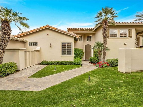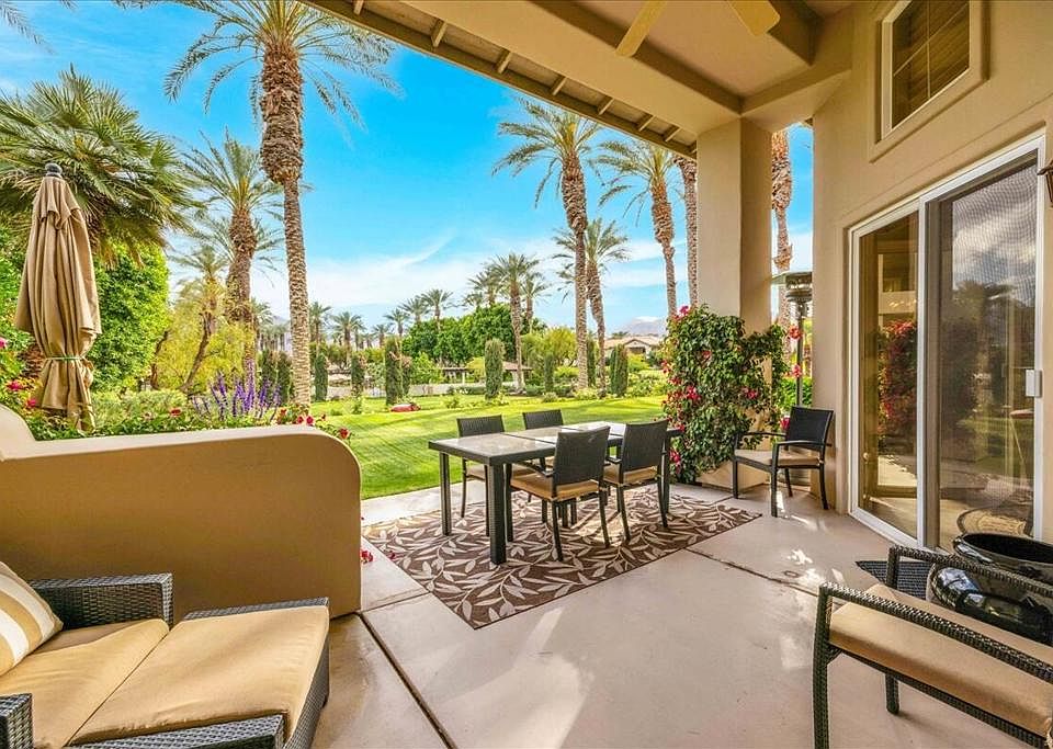 Experience the ultimate lock-and-leave lifestyle in this impeccably maintained and updated 2-bedroom, 2.5-bath Casita at Rancho La Quinta Country Club, ideally positioned moments from world-class amenities. The refined interior features high ceilings, premium Luxury Vinyl Plank flooring, and a gourmet kitchen boasting two-toned Shaker cabinetry and sleek Quartz countertops. The great room offers a captivating, Southern-facing vista that sweeps over the lush greenbelt, the manicured croquet lawn, and perfectly frames the Santa Rosa Mountains. The Primary Suite is a private haven with an updated en-suite bath and custom built-in closet, complemented by a spacious guest suite with its own bath. The highly anticipated remodeled Clubhouse, scheduled to debut mid-season 2026. Convenience is paramount with a dedicated laundry area and Social/Sports Membership included in HOA Dues. Furnishings may be available separately, ensuring a seamless transition to your effortlessly distinguished Rancho La Quinta lifestyle.