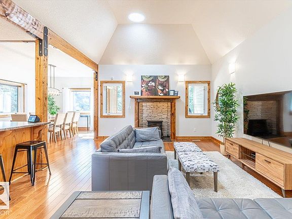 This Immaculate Home shows off its Beauty Inside and Out! Past the Covered Front Deck enter the Main Floor of the home. The Main Floor hosts an open Kitchen, Dining, and Living room with custom wood beams throughout. The Primary Bedroom has a Walk-In Closet, and a 3 Piece Ensuite Bathroom while another Bedroom and 4 Piece Bathroom Conclude the main floor. The Fully Finished Basement Hosts Two more Bedrooms, a 3 Piece Bathroom, Laundry Room, Utility Room, and Extra Storage. The Upper Loft Level is cozy with wood cladded vaulted ceilings Throughout. The Oversized Double Attached Garage is Heated and has an extra added work space. The Back Deck has a Covered Pegula & Gas BBQ Hookup Overlooking the Private, Treed, Fenced Backyard. This Home has many upgrades including Air Conditioning, a Radon Mitigation System, Battery Back Up Sump Pump, Hardie Board Siding, Hardwood Floors, Chain link Fence, and More. This Pride of Ownership property must be viewed in person to appreciate everything it holds Inside and Out!