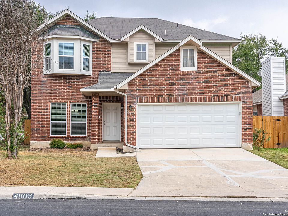 This is 4803 Aspen View, A spacious 2-story home located in corner lot! This 4-bedroom, 2.5-bath home offers over 2,136 sq. ft. of comfortable living space with a 2-car garage. Move-in ready home in a convenient northeast San Antonio location! Features include an open-concept layout, updated kitchen with stainless steel appliances, modern cabinetry, and ample counter space. The roof is only eight years old, offering added peace of mind. The spacious primary suite includes a walk-in closet and private bath. Enjoy a large backyard perfect for gatherings or pets. Nearby are McAllister Park, Morgan's Wonderland, great schools, and shopping at The Forum and North Star Mall. Easy access to Loop 410, I-35, and Wurzbach Parkway makes commuting a breeze! Please set up a showing today!