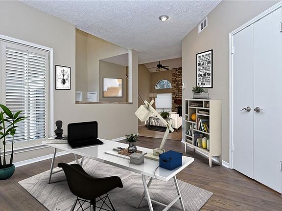 - Interior Features: Smoke Detector, Ceiling-High, Window Treatments, Plantation Shutters, French Doors