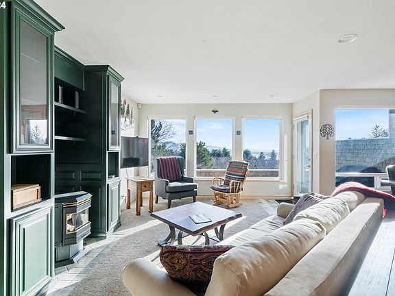 IMMACULATE OCEANVIEW 2-story overlooking 3-hole golf course, common greenspace, resource land across street & nice yard next door. Panoramic unblockable view includes Netarts Bay & Cape Lookout. Enclosed patio off greatroom. Luxurious custom interiors incl solid maple flooring & custom hardwood cabinetry & millwork, travertine marble tiles in baths, vaulted brocade ceiling, high end fixtures, new stainless appliances in 2024, abundant storage incl large attic room with pull down ladder, large walk-in closet, architectural nooks and ledges for displaying artwork, solid core 6-panel doors. Central vac even in garage for cleaning the car. Granite tile kitchen. Located just blocks from sandy beach.