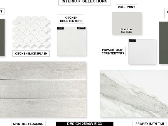 Home office with French doors set at two-story entry. Dining area opens to kitchen and adjacent two-story family room. Kitchen features walk-in pantry and generous island with built-in seating space. Family room features wall of windows. First-floor primary suite includes primary bath with dual vanity, garden tub, separate glass-enclosed shower and two walk-in closets. An additional bedroom is downstairs. A game room and two secondary bedrooms are upstairs. Covered backyard patio. Mud room off two-car garage.