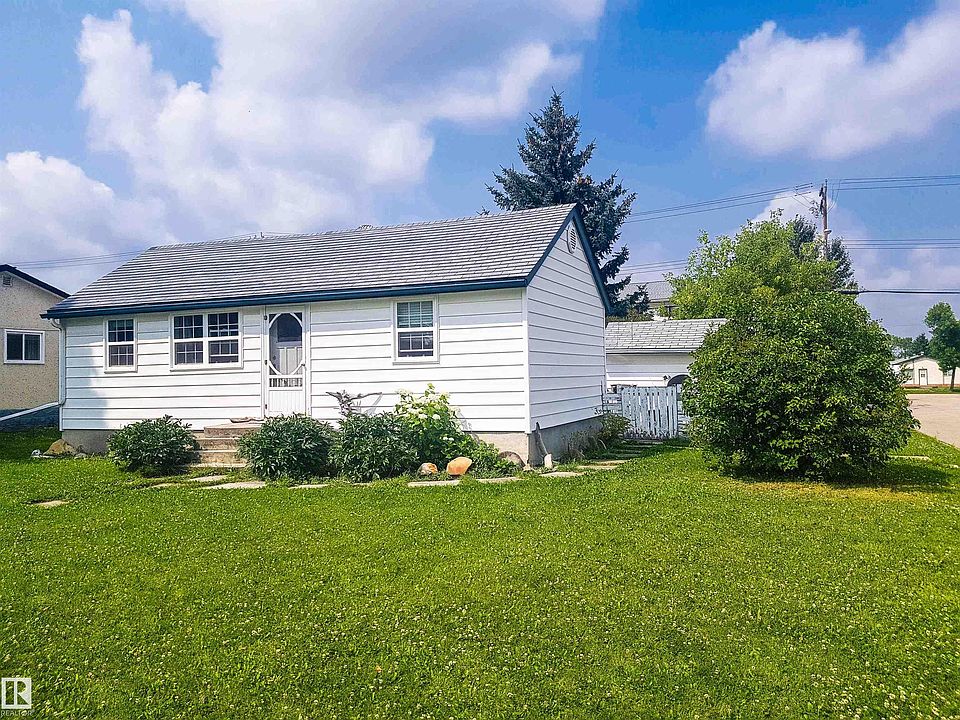 Charming 2-Bedroom Bungalow in the Heart of Drayton Valley! Welcome home to this delightful bungalow featuring a bright, sunny eat-in kitchen with a newer dishwasher, two comfortable bedrooms, and thoughtfully designed storage throughout. Vinyl windows fill the spacious living room with natural light, creating a warm and inviting atmosphere. For added comfort a new furnace was installed in 2023. Situated on a large, fenced corner lot, this property offers a mature yard with room to garden, a handy storage shed, and ample parking space with convenient back alley access. Perfect for first-time home buyers, those looking to downsize, or investors seeking a solid rental opportunity. Ideally located close to all amenities this home combines comfort, practicality, and charm all in one great package!