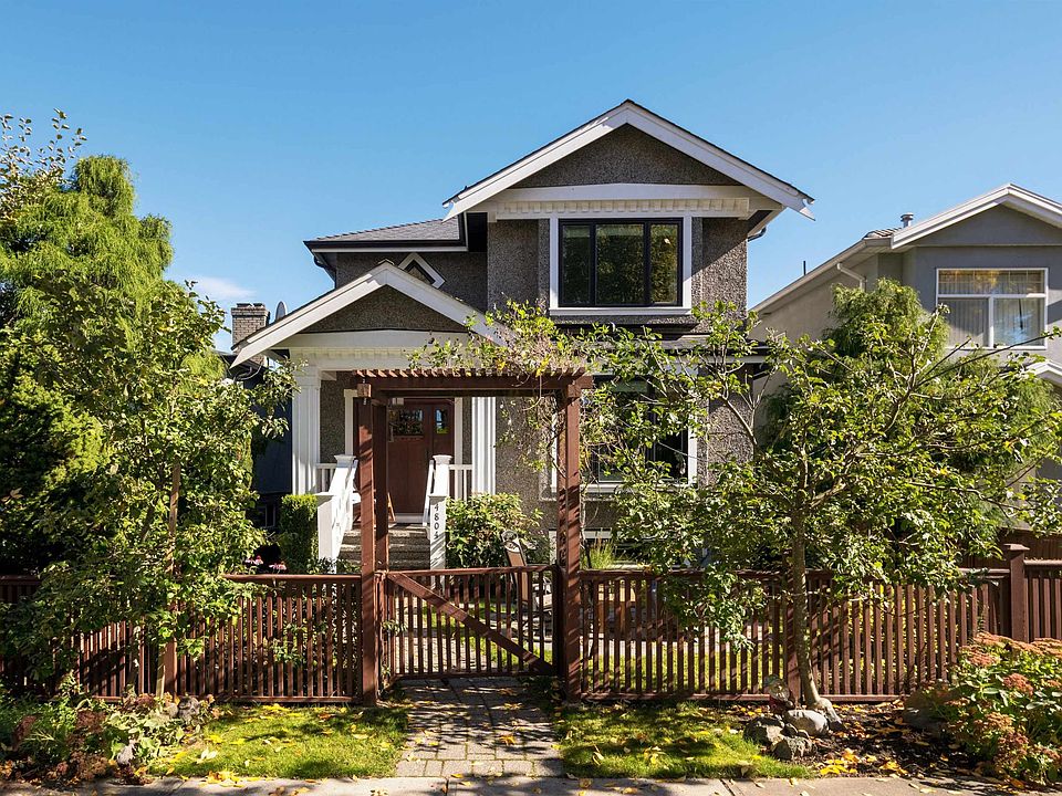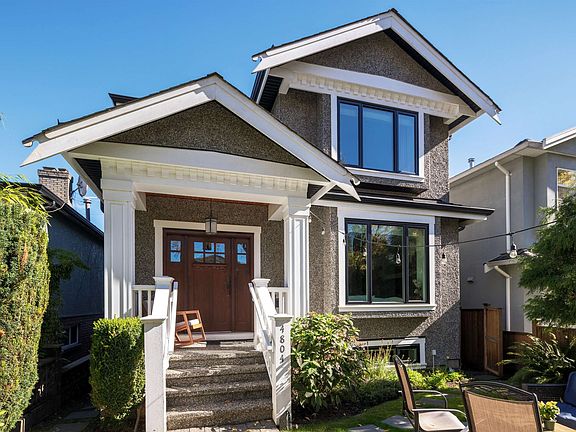 Welcome to this custom-built Craftsman-style home in the heart of Fraserhood, designed with families in mind. Built in 2010, the main floor features a formal living room with gas fireplace and pocket doors that open to a spacious dining area, family room, and kitchen. Enjoy beautiful wood detailing, natural light from abundant windows, and year-round comfort with A/C. Upstairs offers 3 generous bedrooms including a primary with walk-in closet and luxurious ensuite. Skylights brighten both baths. The basement includes a 2 bed legal suite with flexible layout. Outdoor living shines with a west-facing front yard, back deck, and lush yard. Steps to Grays Park. McBride and Tupper catchment.