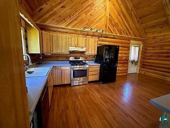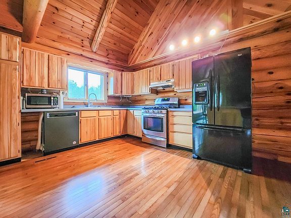Welcome to the charm of Northern Minnesota living where this 3-bedroom, 2-bathroom log home is tucked on 30 acres of woodland splendor, offering you a serene retreat. Along with plenty of ourbldgs. Picture yourself in a home that radiates rustic elegance, perfectly framed by a postcard-worthy landscape of mixed pines that stretch as far as the eye can see. Solid wood beams and open living areas set the stage. Cozy up with loved ones by the fire during those enchanted winter nights. Sip your morning brew or entertain guests with the outdoors as your backdrop on the expansive deck. Unleash your imagination with room to spare for entertainment or storage in the wide-open basement. Sprawling fenced yard is safe haven for your four-legged friends or a green thumb's paradise. Car enthusiasts or hobbyists will revel in this extra space the 4-car garage provides, and the rustic log building brings nostalgia and charm. Schedule a tour of this northern getaway and see it for yourself. 4 stall garage, 22x22 workshop/barn and 14x16 original Log shed with metal roof.
