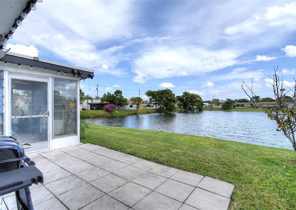 Enjoy your own private oasis with a relaxing, glass-enclosed sunroom overlooking the lake, perfect for savoring stunning sunrises. The home is protected w/ impact windows & boasts a beautifully updated bathroom and a kitchen featuring classic wood cabinets & stainless steel appliances.