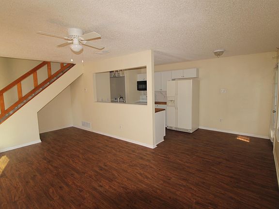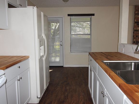This apartment has new luxury vinyl floors, walk in closets, and ceiling fans. The kitchen is complete with a stove, dishwasher, refrigerator, and dining area all with natural oak butcher block countertops. Off the kitchen is a large laundry area with hook-ups for full size washer/dryer. If you need both, let us know as we only charge $30/mo for the set. The upstairs has two large bedrooms, each with a walk-in closet; one br has two walk-in closets. Off the living room, and next to the fireplace is a nice covered patio area for BBQ and a large lockable storage closet. The yard is quite large and the unique location of being on a quiet cul-de sac makes this a great place to live.