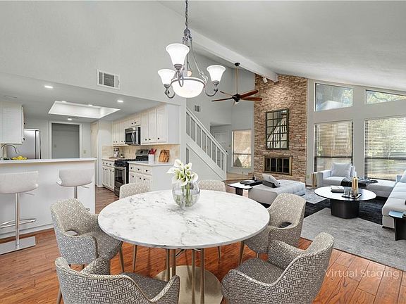 Beautifully updated 3 bedroom, 2 bathroom home with upstairs loft area ideal as an office and 2-car garage in highly sought-after Travis Country backing to the neighborhood greenbelt! Home features vaulted ceilings, open floorplan with lots of natural light and engineered hardwood floors in the main living and dining areas. Kitchen renovation includes quartz countertops, recessed lighting, fixtures and stainless-steel appliances including gas range oven and dishwasher. Spacious master suite includes walk-in closet and updated full bath. Two spare bedrooms and full bath with updated quartz countertops, sink and faucet. All carpeting and lighting fixtures have been replaced and interior has been freshly painted. Peaceful private backyard backing to neighborhood greenbelt with spacious covered patio and mature shady treescape. Perfect for relaxing or entertaining!