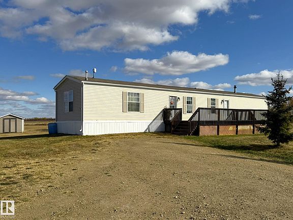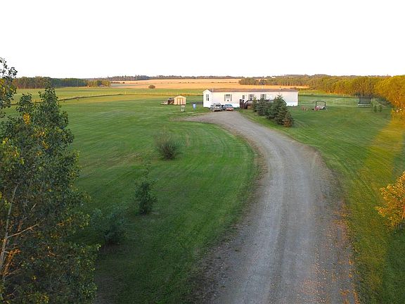 3 bed, 2 bath modular home built in 2007, open floor plan with solid oak cabinets and upgraded vinyl plank flooring and gas fireplace. Primary bedroom features an en suite with separate shower and jetted tub. Another large bedroom boasts double closets and SE facing bay window. Conveniently located only 20 minutes to Leduc, 25 minutes to the airport, 9 minutes to Wizard Lake, within the New Humble Centre School District or Calmar. 5.19 acres fenced with page wire, oak trees planted, owners were planning on building a house so utilities are set up to handle a 6 bedroom house. Tank and mound sewer system, underground power, good drilled well. Plenty of room to build a dream home and shop. Or just move in and enjoy!