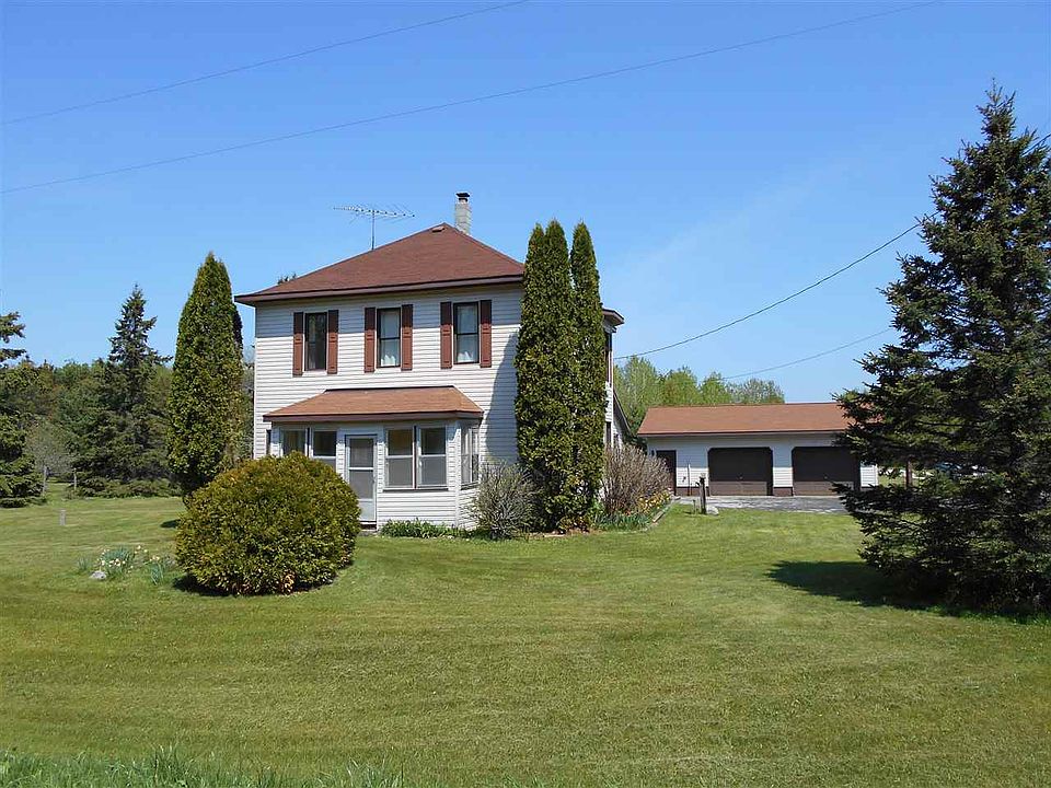 Large, stately farmhouse on 5 acres featuring 3 bedrooms, 2 baths, spacious, bright kitchen, large family room, beautiful perennial gardens and a 2 car detached garage. Outdoor wood heat, paved driveway and tons of character and charm. Many updates including, carpet, vinyl flooring, drywall, interior paint, drilled well, pump and tank. Includes appliances.