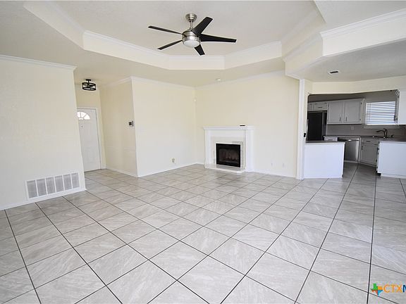Welcome to this beautifully maintained 3-bedroom, 2-bath home full of charm and comfort. Step inside to a spacious living room featuring elegant tile flooring, a cozy wood-burning fireplace, soaring pop-up ceilings, and crown molding throughout. The open kitchen offers plenty of space with white cabinetry, a brand-new range, and a sunny eat-in dining area—perfect for everyday living or entertaining. The master suite is generously sized, with a relaxing ensuite bathroom featuring a soaking tub, separate shower, dual vanities, and a walk-in closet. The secondary bedrooms are comfortably sized, offering versatility for family, guests, or a home office. Enjoy the outdoors in the flat backyard, complete with a wood privacy fence and a storage shed for added convenience. Located just minutes from Fort Hood, schools, shopping, and with easy access to Austin, this home combines comfort, style, and convenience.