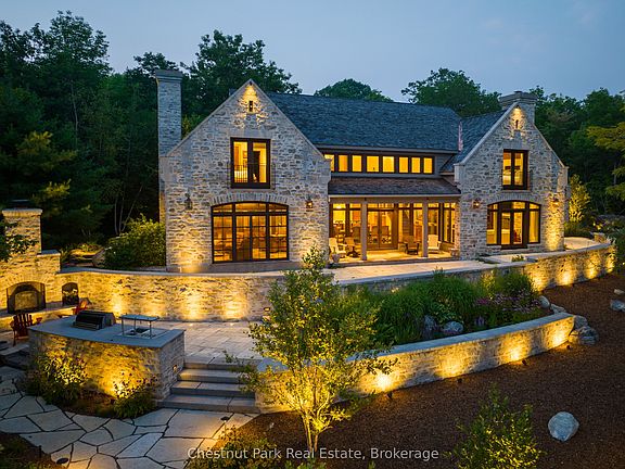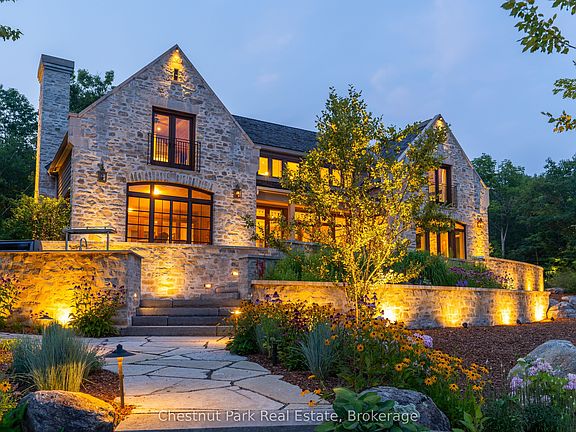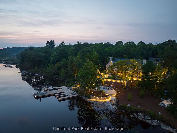 Looking for the ultimate in privacy, luxury and elegance with world class amenities at your back door? This rarest of offerings will not only meet, but surpass those expectations. With gated access through a world class private golf course you arrive at your destination situated on a private members only Lake in the heart of Muskoka. This stunning property features 530 feet of natural shoreline and over 9 acres of mature forested landscaping with expansive sunset vistas on Cassidy Lake. Quality and craftsmanship are evident throughout the 6 plus bedroom Lakehouse. Beautiful perennial gardens and granite outcroppings lead to the main entrance. The stunning rubble stone structure offers tranquil lake views through expansive windows and capture the exquisite surrounds. Extensive stone patios, outdoor kitchen with stone fireplace and additionally a lakeside stone firepit along with four slip dock, complete with hydraulic lifts , will provide for hours of outdoor living. Extensive night sky friendly lightscaping illuminate this magnificent home. Chefs kitchen and large pantry will be well suited to entertaining. The main floor features two wood burning stone fireplaces, one in the Great room, the other in the family room which bookend the central kitchen and dining area. For late night gatherings the screened Muskoka Room will extend you outdoor summer evening. Main floor primary bedroom with spa like en-suite with five guest bedrooms on the second floor. Additionally the coach house can accommodate two additional guest bedrooms complete with private living space and large second floor deck with lake views. The garage/coach house will provide ample space for six vehicles, or any toys you might have. Adjacent golf cart port with charger will keep you at the ready for a quick game at the renowned and exclusive Oviinbyrd Golf Club.