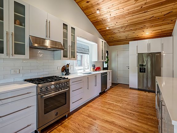 Timeless, classic, and absolutely beautiful 4-Bed, 2-Bath Ranch! Completely redone in 2017, this stunning home is located in the heart of one of the most sought-after neighborhoods in Downtown Downers Grove. Just blocks away from the Main Street BNSF Express Train Station, dining, shopping, and within walking distance to all three top-rated public schools: Pierce Downer Elementary, Herrick Middle, and Downers North High School. The first floor features a desirable layout showcasing a soaring wood-vaulted ceiling, hardwood floors throughout, abundant windows, and designer lighting. The gourmet kitchen boasts custom cabinets with plenty of prep and entertaining space, professional-grade appliances, and a breakfast bar, opening to a sun-filled living room. The expansive primary bedroom is complemented by three additional spacious and finely appointed bedrooms & baths. The lower walk-out level offers a spacious family room with a wood-burning fireplace with a glass door leading to a patio. This overlooks a fenced-in, glorious backyard with mature trees, planned for the ultimate outdoor enjoyment. Experience timeless charm and modern elegance in this beautifully redone home in prime location!