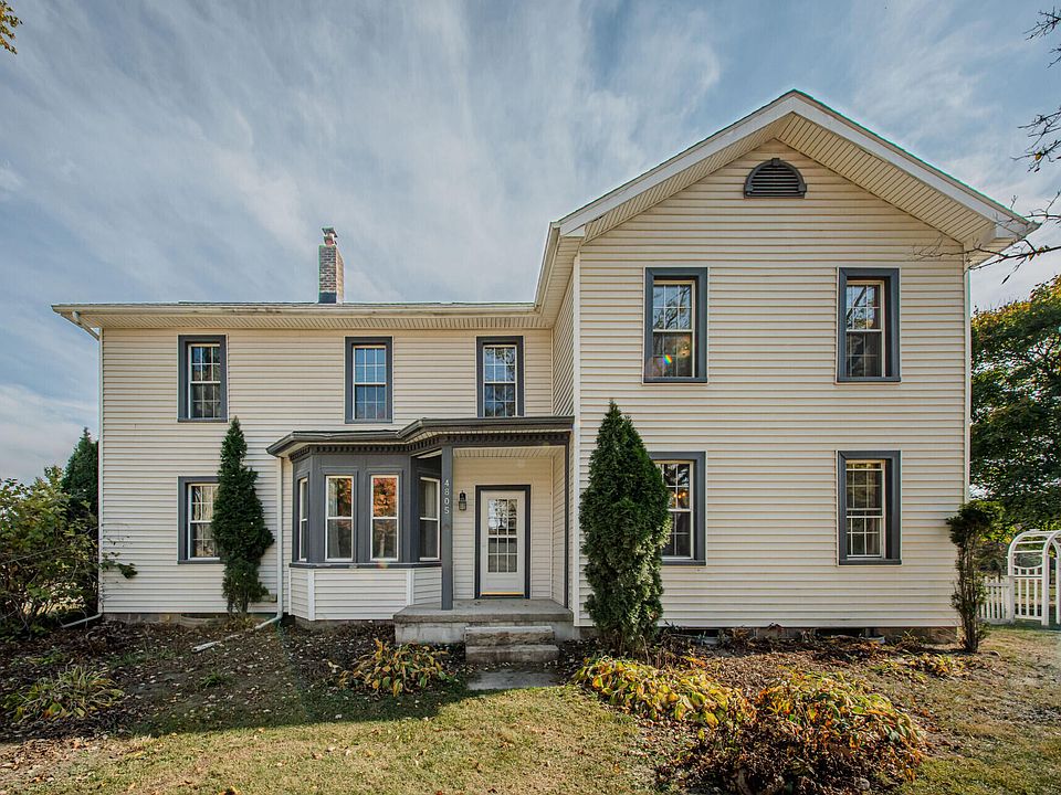Seize this rare opportunity to own a unique, updated 1890's farmhouse filled with charm and character, and surrounded by nature. Set on a five-acre homestead that is a working farm less than one mile from the Ann Arbor city limits! This is the historic Morgan farmhouse, thoughtfully remodeled by Giraffe Design Build, a specialist in historical renovations. The home features 5 bedrooms and 2 bathrooms, with over 3000 sq.ft. of living space. With tall ceilings and large windows, the rooms are flooded with natural light at every turn. On the main floor, you'll find a true gourmet kitchen, featuring Kraftmaid's Starmark custom cherry cabinetry and 100-year old restored maple flooring. Centered on a large island with butcher block countertop, the workspace features a charming tin backsplash, a large farm-style sink, an additional prep sink, a large pantry, and a breakfast bar. The main floor also boasts gorgeous period oak flooring, a guest bedroom what can serve as a flex room, a large living room, a designated dining area off of the kitchen, a dedicated office, a first-floor laundry room, and a south-facing sunroom that leads out to the deck and hot tub. There's also a fully remodeled bathroom on the main floor, complete with cork flooring and a spa-sized custom-tiled shower with a glass Euro-door. Upstairs, you will find a loft and play area, another beautifully updated bathroom, and a spacious primary bedroom with a walk-in closet, plus three additional large bedrooms. The home also features generous closet space and a solid, clean Michigan basement with a partial concrete floor, perfect for storage or as a cellar. Now, let's talk about the outbuildings! Whether you are an executive dreaming of a mini farm, an animal enthusiast, an organic farmer, or a crafts person or contractor, the possiblilities are endless. This is a true working farm. A short walk from the house you will find a 20x40 garage with a connected office (ideal for working from home), and in the distance a truly majestic 40x80 circa 1920's red gambrel roof barn, complete with a drive-up hay loft (this space would be an amazing party barn!), and below is divided into a milking parlor and area for your animals. The horse stable was actually on this property before the main house and is complete with two stalls, a tack room, a storage room--wait until you see the axe marks on the solid beam (the craftmanship is incredible), and a wall with names etched in from years past--so cool! Another outbuilding/workshop with 220 power that is tall enough to fit a large boat, and there is even a chicken coop. The land is teeming with nature--eastern screech owls, wild turkeys, foxes, deer, and occasionally, bald eagles. Nestled across from a nature preserve, and surrounded by public land, you will be amazed by the peace and quiet, yet just moments from all that Downtown Ann Arbor has to offer! A new septic field was installed recently, public water, low Pittsfield township taxes, and Ann Arbor schools. This home is truly remarkable!