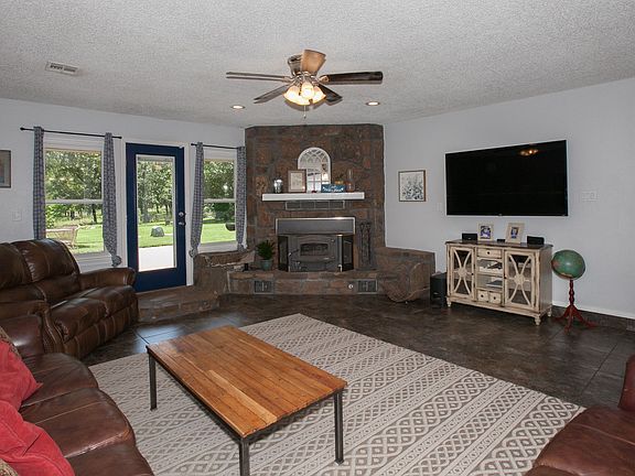 Only 30 minutes from downtown Tulsa! Updated country home on 2.74 acres. Close to town & lake in Round Mountain Estates, Sand Springs. Fully fenced. 2 storm shelters, well water, barn & 11 bay dog kennel with electric & water. Plus an office with separate entrance. Great family home and/or business possibilities. Beautiful views with mature trees. Must see!