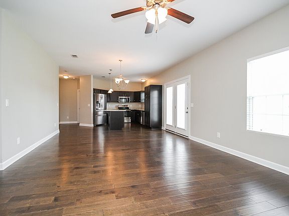 Huge great roomStainless steel appliancesLots of natural lightDark wood cabinetsCeiling fanLiving and dining roomsGranite countertops