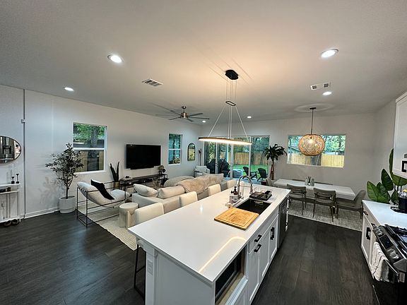 The house was built in 2022 with great high ceilings and natural light. The kitchen includes a Samsung dishwasher, french door refrigerator, gas-range and a huge sink with built-in garbge disposal. Samsung top-load washer and gas powered dryer are included. The side-yard/walkway was just redone and comes with an outdoor shed for additional storage.