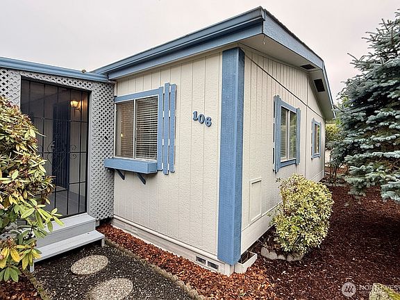 Beautiful 2 Bedroom Home in Quiet 55+ Park! Features open concept, vaulted ceiling and lots of windows for natural light. Kitchen shows great with skylight, new cabinets, new glass tile backsplash, large kitchen sink, eating bar, & all appliances included. Home has been nicely updated with new: interior and exterior paint, vinyl plank floors, carpet & easy walk-in shower. Nice floor plan makes home feel spacious. Enclosed covered front porch for entertaining & beautiful landscaped yard. Large carport with storage building. Close to shopping, & I-5. Heated community pool, club house and beach access! Home shows great!