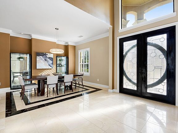 Sparkling saltwater poolCustom fireplaceStainless steel appliancesPrivate home officeNatural lightFormal diningGame room