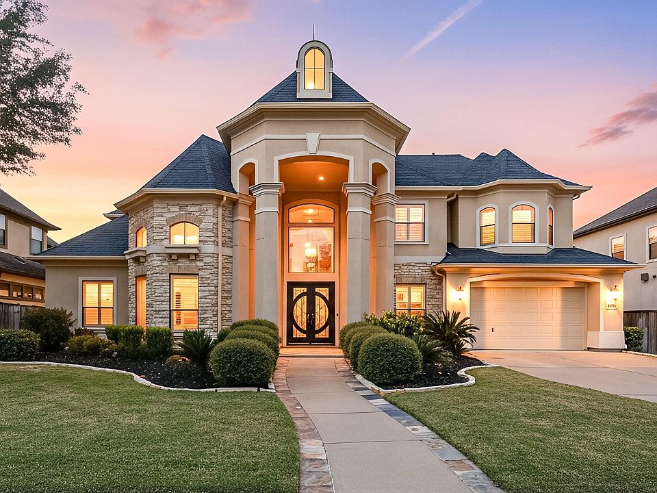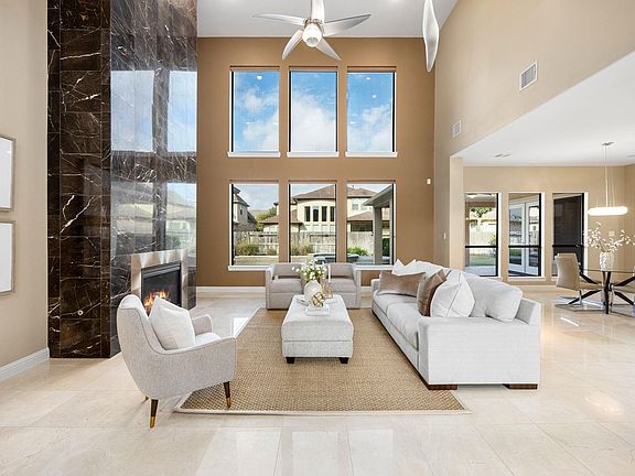 Stunning Mediterranean home with a resort-style saltwater pool & spa, built by Partner in Building in master-planned Cinco Ranch. This 5-bed, 5.5-bath luxury home features grand double doors, formal dining,& a private home office. Expansive living room boasts soaring ceilings, a custom fireplace, & large windows overlooking the pool, filling the space w natural light. Gourmet kitchen offers a large island, double ovens, stainless steel appliances, abundant counter space,& a spacious breakfast area. Primary suite includes a sitting area, tray ceilings, and a spa-like bath. Upstairs features an open-to-below view, game room, media room, and four spacious secondary bedrooms. Outdoors, enjoy a sparkling saltwater pool, covered patio w built-in outdoor kitchen, lush landscaping on a huge lot. Roof, Water Heater 2024, & Water Softener system. Zoned to top-rated Katy ISD w access to parks, trails, tennis courts, & resort-style amenities. Close to 99, Westpark, LaCenterra, dining, & shopping.