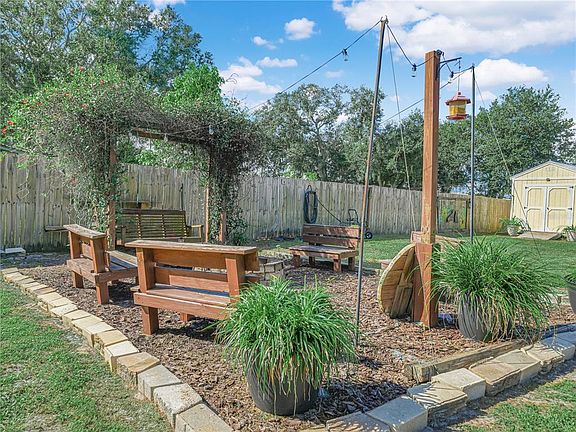 Charm meets functionality with this beautifully maintained 3-bedroom, 1.5-bath home on a peaceful cul-de-sac with no rear neighbors and NO HOA. The home boasts a vibrant, charming sunny exterior, an open floor plan, and a newer 6-year-old metal roof. Set on a large, fully fenced lot, the backyard feels like a private oasis featuring lush plants and serene outdoor seating areas for entertaining. Storage is a breeze with multiple sheds, practical workshop spaces, and a custom, air-conditioned "sports shed" perfect for The Big Game! The kitchen is open and inviting with an ample coffee bar that provides additional kitchen storage space. This home is spotless, well-kept and move-in ready-just waiting on its new owner! Call today for a showing-this home will not last long.