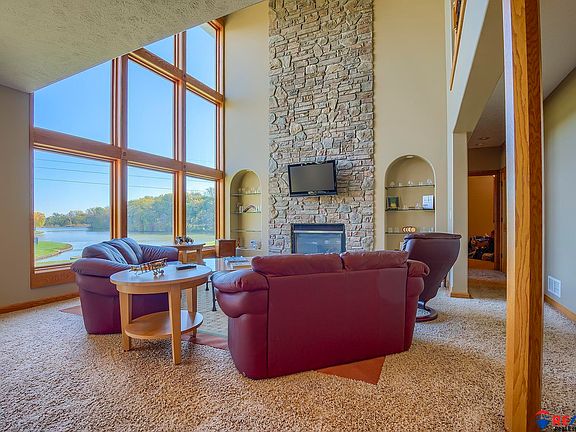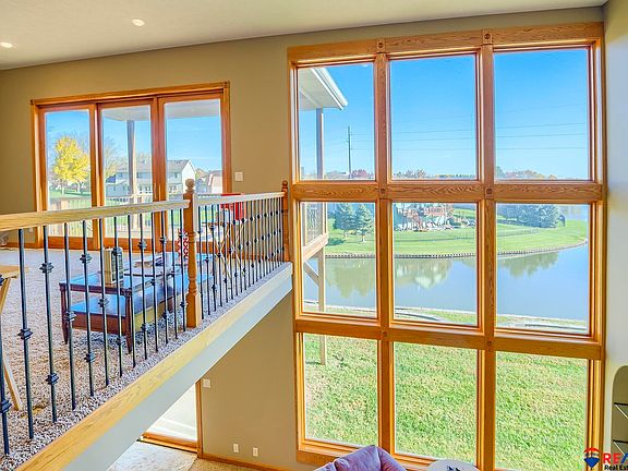 Open Sunday,Nov.2 from 1-3.Exceptional walkout custom-built ranch on the lake was designed for entertaining on both levels.It boasts over 3,469 sq.ft. with massive windows providing breathtaking lake views,volume ceilings and a stunning two-story stone fireplace accent wall.Chef’s kitchen features granite counters, upgraded Legacy stove/oven, walk-in pantry,and high-end finishes.Numerous upgrades include stair lights,Pella windows,solid core doors,boxed ceiling in primary suite, spacious walk-in closet,whirlpool tub,walk-in shower, dual vanities,and I-joist framing.Lower level offers a walkout to the lake and an in-law/guest suite with 2BRs,large family room, full kitchen, playroom, and an additional full bath — perfect for guests or multigenerational living. Laundry rooms on both levels, office is on the main floor, and there’s an oversized three-car garage. Even drive has a drain. Covered deck overlooks the lake. Vinyl siding for low maintenance. All appliances stay.
