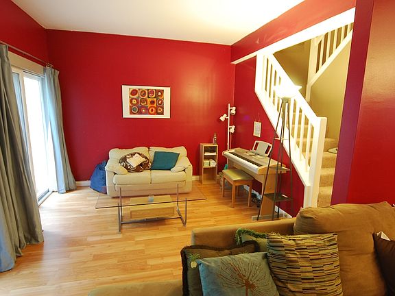 Fabulous open downstairs floor plan with tons of light from great sliding glass doors both on the front and rear of this unit. Rear doors face a large private deck with heavy woods directly behind offering privacy. Downstairs is a dream for entertaining with an open kitchen and breakfast area that fronts to the dining room and one step down to the living room and a gas burning fireplace. The 1st floor also has a 1/2 bath right off the entrance.Upstairs has a loft/bedroom at the top of the stairs which would make a great office or nursery. Next to this is a good sized bedroom and a full bath round out the guest quarters for this home. The master has a triple window which looks out over the heavy woods and has a full bath just off this beautiful room. THIS PROPERTY IS NOT FOR RENT.