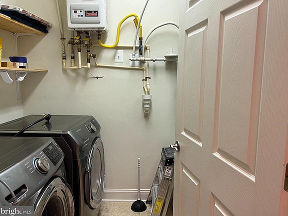 Modern kitchenWalk-in closetUpdated washer and dryerLarge bathroomHardwood floorsStainless steel appliancesLaundry room