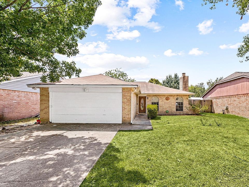Beautiful one-story home featuring 3 bedrooms & 2 bathrooms w/ a smart open-concept layout nestled in a community filled w/ amenities! Inside, enjoy a bright & open living room showcasing a stunning custom white-stone fireplace & durable wood-look tile flooring. The kitchen offers great flow & a charming bay window breakfast nook perfect for casual dining. The spacious master suite boasts a large walk-in closet & private en-suite bath, while two secondary bedrooms provide ample space for guests or a home office. An additional office/den area is thoughtfully built inside the garage—ideal for remote work or study. Step outside to a huge covered patio complete w/ outdoor fireplace, perfect for entertaining year-round, plus a large metal storage shed for extra space. Solar panels will be PAID OFF at closing! Conveniently located near Old Town Spring & Deerbrook Mall w/ easy access to I-45, Hwy 69, Hardy Toll Rd & Bush Intercontinental Airport.