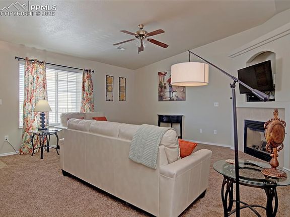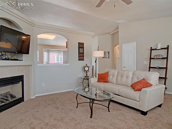 Step into this spacious, all on one level home with updates. The home has new rich brown LVP (luxury vinyl flooring) in the kitchen, bathroom, and entryway. The living room has a vaulted ceiling, newer carpet, a coat closet, a fireplace, and a built-in TV cubby. The master bedroom is HUGE with a HUGE walk-in closet. King bed is no problem. Attached 5-piece bath with double sinks and a large garden tub. The second and third bedrooms are equally spacious, with a full bathroom in the hall to share. Additionally, there is a front covered porch and a back covered deck off the kitchen.* Parking: 2 assigned parking spaces right in front of your doorway entrance. Home is at the end of the cul-de-sac. Home is close to Peterson, Schreiver, and Ft Carson for an easy commute. * Home is staged. Sellers are active Realtors in Colorado Springs.